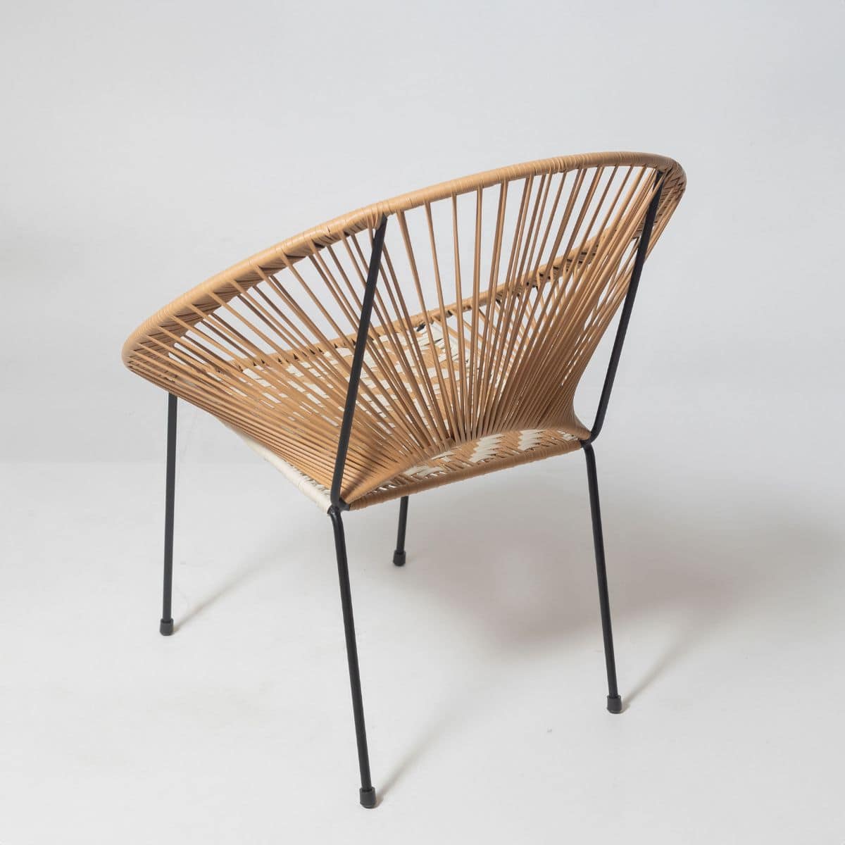 The Pavo Chair combines a solid metal frame with durable PVC weaving, offering comfortable seating and optimal support. Its rounded, airy design, enhanced by a trendy geometric pattern, makes it a real decorative asset.